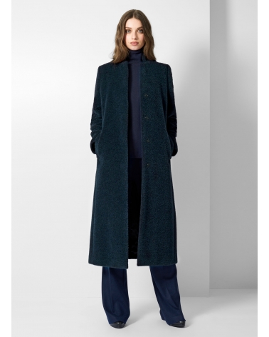 Maxi marine blue wool and alpaca coat with inverted notch collar