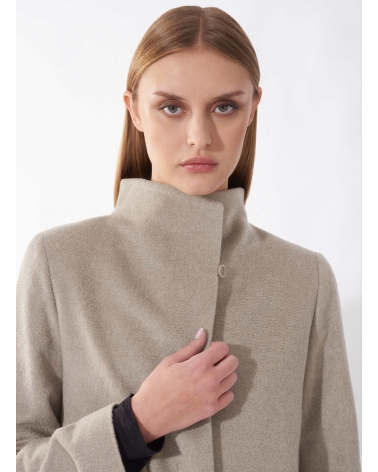 Flared dark beige pure cashmere coat with high stand up collar