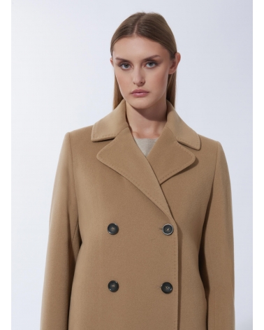 Maxi 6 buttons double breasted dark camel wool and cashmere coat