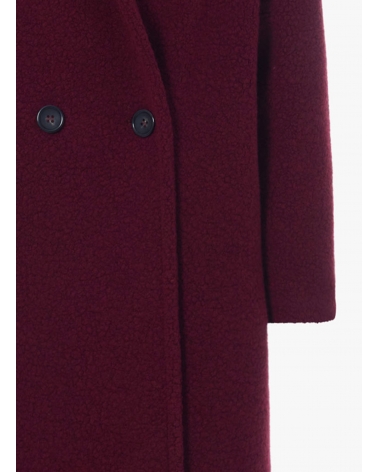 Double breasted burgundy wool coat with notch collar