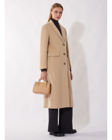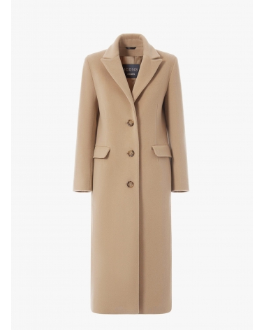 Maxi light camel wool and cashmere coat with masculine cut