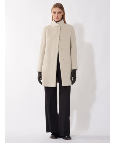 Short flared beige wool and alpaca coat with side vents