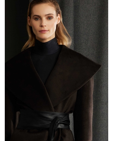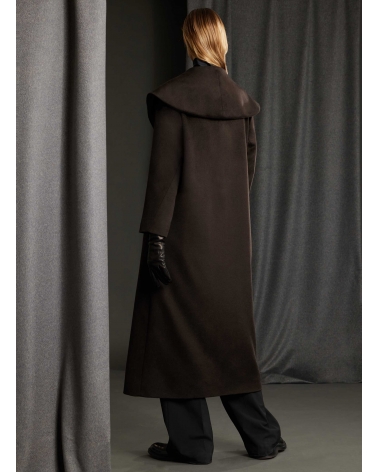 Brown pure silk coat with shawl collar