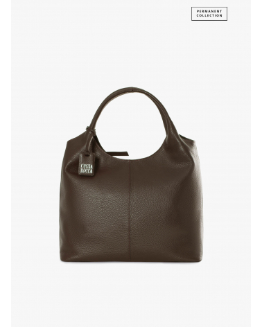 Maxi brown genuine leather shoulder bag