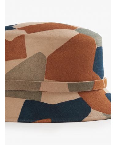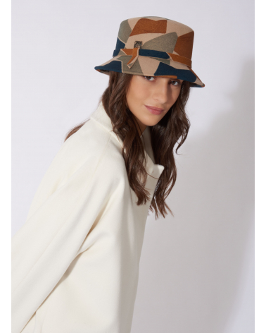Camel wool bucket hat with geometric pattern