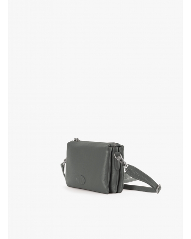 Grey genuine leather crossbody bag with three compartments