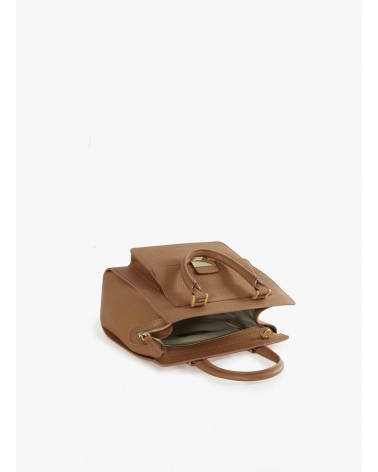 Tobacco color genuine leather structured bag with metal closure