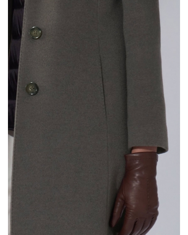 Dark taupe pure wool coat with detachable nylon bib