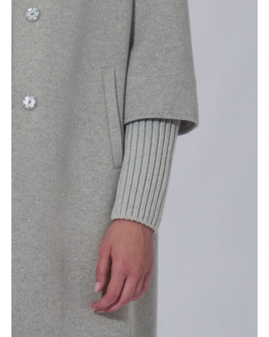 Light grey pure wool coat with detachable knitted details