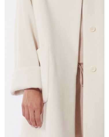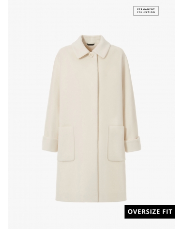 Oversized white pure wool coat with shirt collar