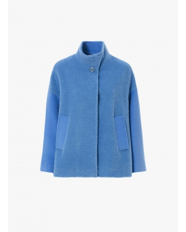 Short light blue wool and alpaca coat with contrasting fabric texture