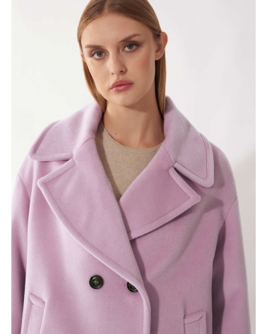 Short oversized pink coat in pure wool with maxi notch collar