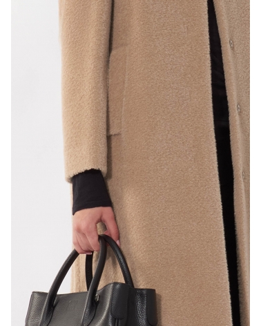 Maxi dark beige wool and alpaca coat with inverted notch collar
