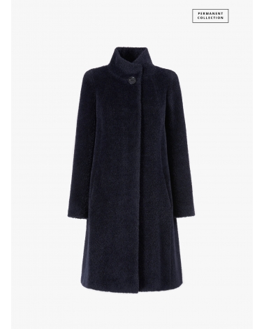 Flared blue wool and alpaca coat