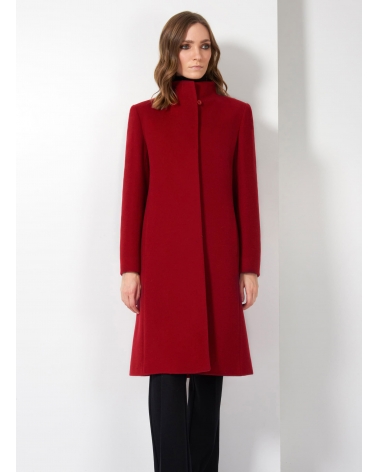 Red wool and cashmere coat with high stand up collar