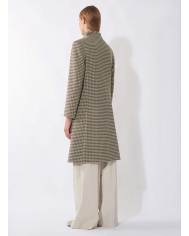 Dark taupe pure wool houndstooth coat with high stand up collar