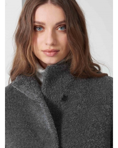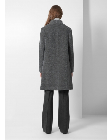 Flared grey wool and alpaca coat with high stand collar