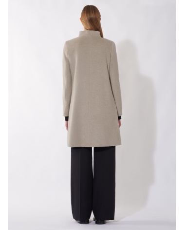 Flared dark beige pure cashmere coat with high stand up collar