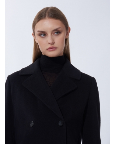 Maxi 6 buttons double breasted black wool and cashmere coat