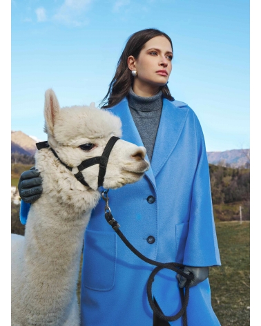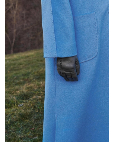 Maxi oversized light blue pure wool coat with patch pockets