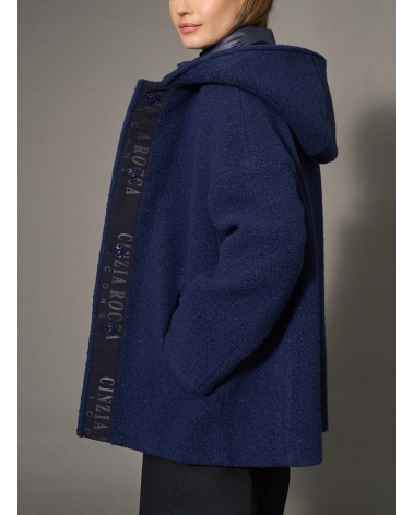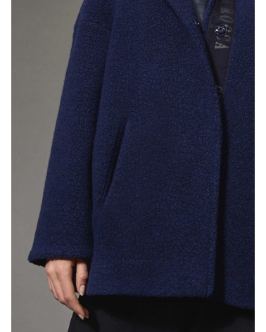 Short navy blue wool parka with detachable nylon bib