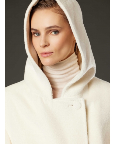 Maxi belted white alpaca and wool coat with hood