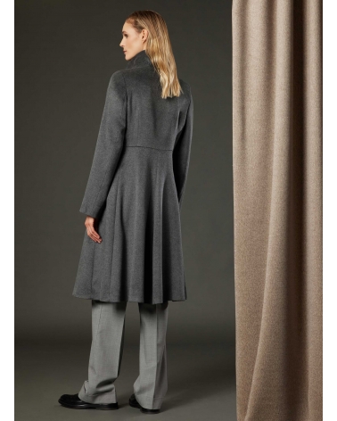 Long grey pure silk frock coat with high drape collar