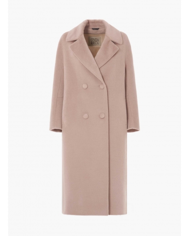 Long double breasted pink coat in alpaca and wool